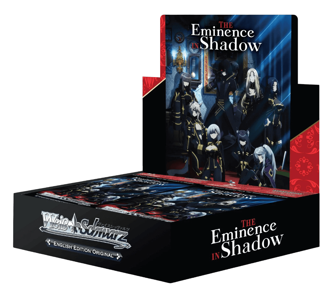 Weiss Schwarz TCG – Booster Box – The Eminence in Shadow [EN] to oficjalny produkt kolekcjonerskiej gry karcianej Weiß Schwarz, oparty na popularnej serii anime The Eminence in Shadow. Ta angielska edycja została przygotowana jako English Edition Original, oferując unikalne karty i ilustracje stworzone specjalnie dla tego wydania.